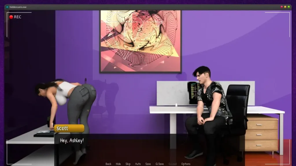 Think of it this way: each camera is a chapter in a story you’re subtly writing. From the main lobby to the break room, the supply closet, and even the women’s toilet (a particularly daring addition), you watch Ashley’s daily routine. The magic begins when male employees enter the frame. Your role shifts from watcher to guide. Through limited, choice-based interactions (often presented as “thoughts” or text messages you can send Ashley), you can encourage or discourage her interactions. Do you plant a seed of curiosity when she talks to the confident manager? Or do you send a loving text that pulls her attention back to you?
